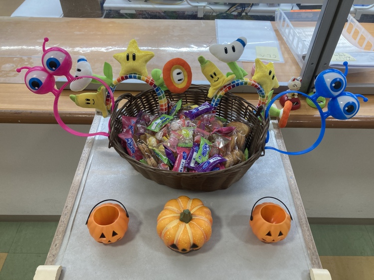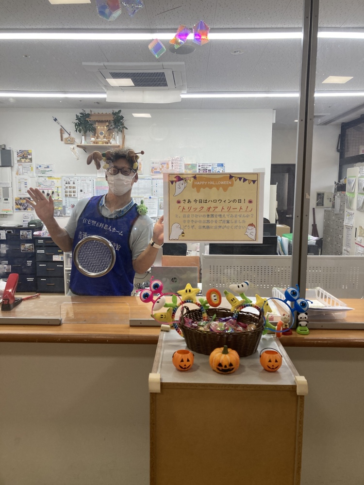 当施設では、玄関口である事務所にて、ささやかながらハロウィンイベントとして、事務所のそばを通られる方にお菓子をプレゼントするイベントを開催いたしました!