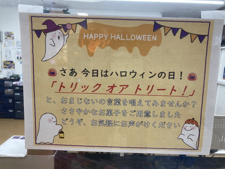 ですが、スタッフが仮装をして「トリック オア トリート!」と声をかけると、皆様もニッコリ!